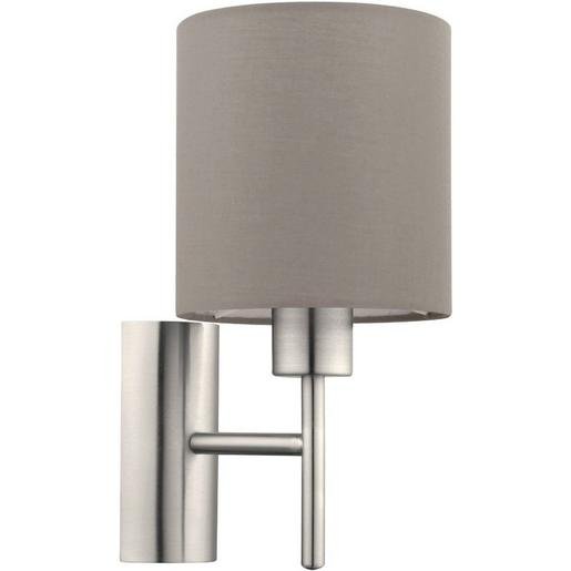 Eglo 94925 Wandleuchte PASTERI 1x60W E27 mit Wippschalter nickel-matt /Taupe Verpackungseinheit:1ST