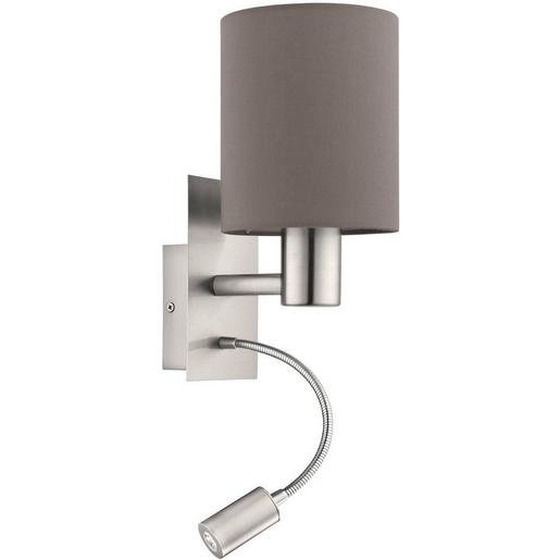 Eglo 96478 Wandleuchte PASTERI E27+LED 1x40W+1×3,5W nickel-matt/Taupe +Schalter Verpackungseinheit:1ST
