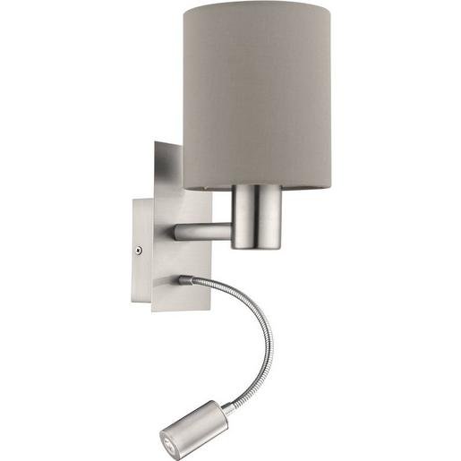 Eglo 96479 Wandleuchte PASTERI E27+LED 1x40W+1×3,5W nickel-matt/grau mit Schalter Verpackungseinheit:1ST
