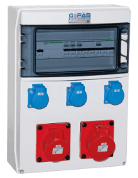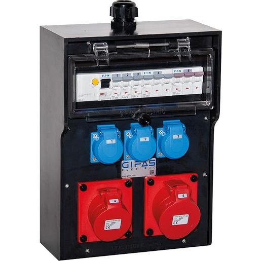 GIFAS 136314 Vollgummi AP Steckdosenv.BR 7400 schw. IP44,1xCEE32A,1xCEE16A,3xSchuko,FI,LS,KV 74HP31937.0,03.40.XF.SP.1M32.OBEN.F&G Verpackungseinheit:1ST