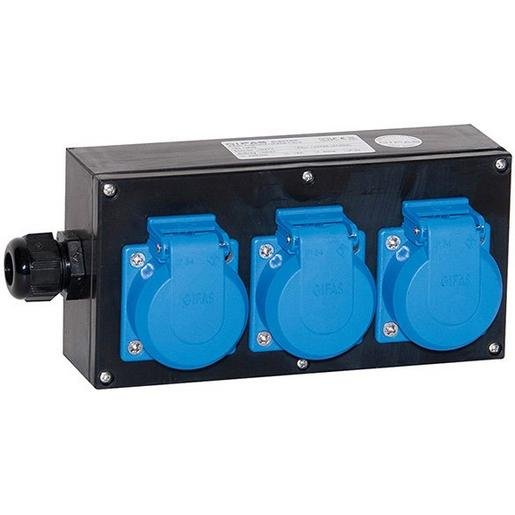Gifas 25473 Vollgummi Wandverteiler Aufputz Verteilergehäuse schwarz IP44 3xSchuko 1xKV M20 Verpackungseinheit:1ST