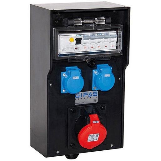 GIFAS 136942 Vollgummi Steckdosenv.mobil BR62HT schw. IP44,1xCEE32A,2xCEE16A,3xSchuko,FI,LS, B#62HT323.11G93G7.0,03.40.XF.SP.2M.OG.SC Verpackungseinheit:1ST