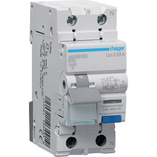 HAGER ADG513D FI-LS 1P+N 10kA B-13A 30mA Typ A-G Verpackungseinheit:1ST