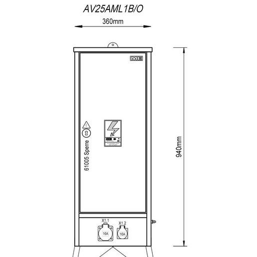 Mehler AV25AML1B/O Baustromverteiler für Oberösterreich (BxHxT) 940x 360 x 235 mm Verpackungseinheit:1ST