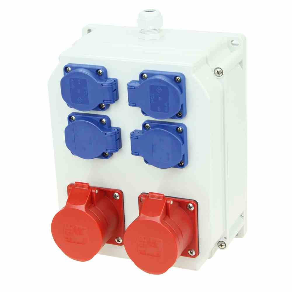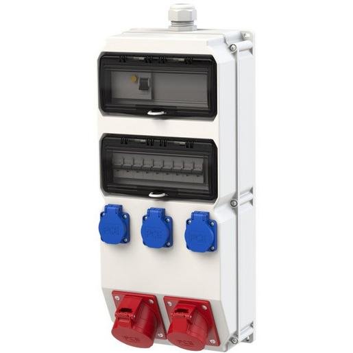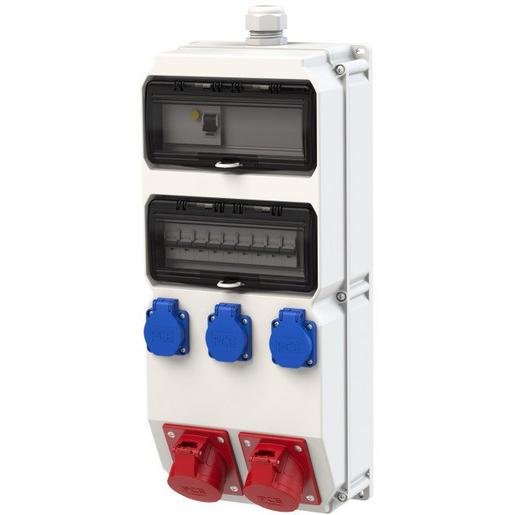 PCE 9018110 Kunstsoff Wandverteiler LOFER7 1 x CEE 2 x Schuko 3 LS 1 x Fi Verpackungseinheit:1ST