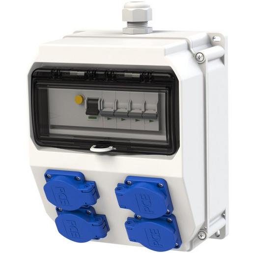 PCE 9017034 Steckdosen-Kombi, Kunststoff, weiß, IP54, 6Steckd, ohne Absicherung, M20, ohne FI-Schutzschalter