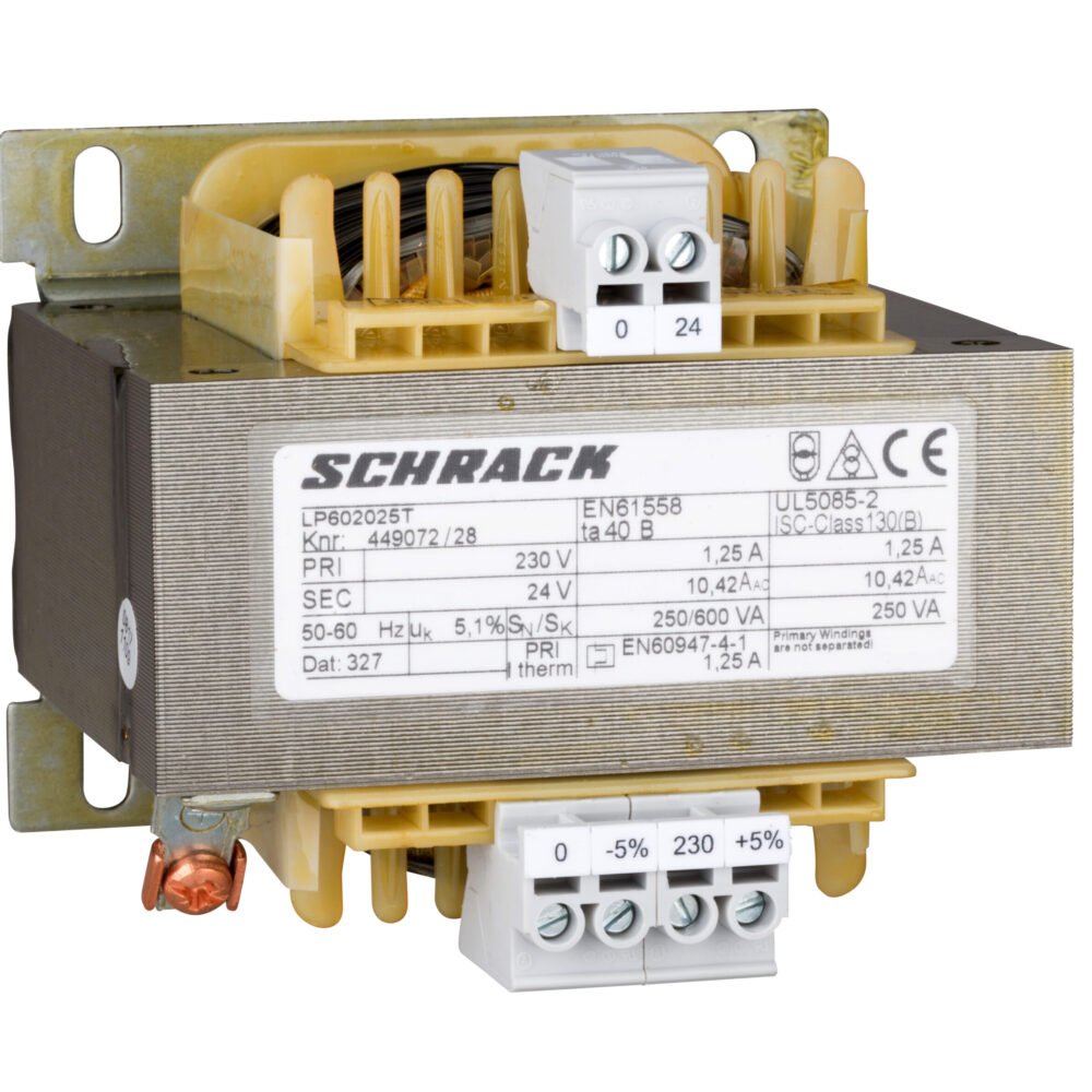 LP602025T- Einphasen Steuertransformator 230/24V, 250VA, IP00