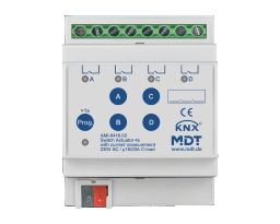 MDT AMI-0416.03 Schaltaktor 4-fach, 4TE, REG, 16/20 A, 2 30 V AC, C-Last mit Strommessung, 200 µF Verpackungseinheit:1ST