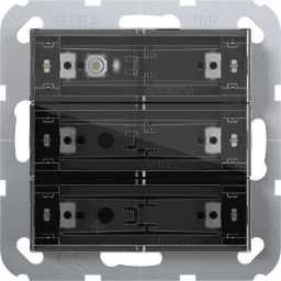 | Tastsensor 4 Komfort 3fach für KNX System 55, mit Inbetriebnahme-Wippe Merkmale: Tastsensor mit integriertem Busankoppler und der Möglichkeit einen verdrahteten Fernfühler anzuschließen. Integrierter Temperatursensor. Der Tastsensor ist zu vervollständigen mit separat zu bestellenden Wippensets. Es stehen drei Wippensets Varianten zur Verfügung: Wippensets ohne Beschriftungsmöglichkeit, mit Beschriftungsfeld oder individuell gelaserte Wippen. Der Tastsensor kann waagerecht (Einbaulage „normal“) oder senkrecht (Einbaulage „Um -90 gedreht“) eingebaut werden. Wippen- oder Tastenfunktion für jede Bedienfläche einstellbar. Taktiles Feedback bei Tastendruck. Funktionen: Schalten, Dimmen von Helligkeit und Frabtemperatur, Farbsteuerung, Jalousie, Wertgeber, Szenennebenstelle, 2-Kanal-Bedienung und Reglernebenstelle. Schalten: Reaktion beim Drücken und oder Loslassen, Einschalten, Ausschalten, Umschalten. Dimmen von Helligkeit und Farbtemperatur: Zeiten für kurze und lange Betätigung, Dimmen in verschiedenen Stufen, Telegrammwiederholung bei langer Betätigung, Senden eines Stopptelegramms bei Ende der Betätigung. Farbsteuerung: Art der Farbsteuerung, Farbraum und Farbwerte sind einstellbar. Der Befehl beim Drücken, die Zeit zwischen Schalten und Farbdurchlauf Helligkeitsverstellung, der Startwert und die Schrittweite der Verstellung sowie die Telegrammwiederholung bei langer Betätigung ist einstellbar. Jalousie: Der Befehl beim Drücken und das Bedienkonzept ist einstellbar. Das Bedienkonzept kann in den Zeiten für kurze und lange Betätigung und Lamellenverstellung angepasst werden. Wertgeber: Die Funktionsweise (1 Byte, 2 Byte, 3 Byte oder 6 Byte Wertgeber) und der Wert ist einstellbar. Szenennebenstelle: Die Funktionsweise (ohne oder mit Speicherfunktion) und die Szenennummer ist einstellbar. 2-Kanal-Bedienung: Durch einen Tastendruck können bis zu zwei Telegramme auf den KNX ausgesendet werden. Das Bedienkonzept kann eingestellt und die Zeit für kurze und lange Betätigung angepasst werden. Die Funktionsweise der Kanäle ist getrennt voneinander einstellbar. Reglernebenstelle: Die Funktionsweise (Betriebsmodusumschaltung, Zwang-Betriebsmodusumschaltung, Präsenzfunktion und Sollwertverschiebung) ist einstellbar. Sperrfunktion zum Sperren von einzelnen Tasten bzw. Wippen. Reglernebenstellen-Eigenschaften: Die Reglernebenstelle ist als Funktion einer Wippe bzw. Taste parametrierbar. Steuerung eines Raumtemperaturreglers (Betriebsmodi, Präsenzfunktion und Sollwertverschiebung). Auswertung des Reglerzustandes über die Status-LED. Temperaturmessung ist aktivierbar. Messung der Raumtemperatur mit internen Fühler oder optional durch eine Messwertbildung der intern gemessenen Temperatur mit einer externen Temperatur. Funktionen der Status-LED: Die Funktionsauswahl erfolgt je Status-LED. Folgende Funktionen sind parametrierbar: immer AUS, immer EIN, Betätigungsanzeige, Telegrammquittierung, Statusanzeige, Ansteuerung über separates LED-Objekt, Betriebsmodusanzeige, Anzeige Reglerstatus, Anzeige Präsenzstatus und Anzeige Sollwertverschiebung. Farbe ist parametrierbar. Die Farbauswahl erfolgt entweder gemeinsam für alle Status-LED oder getrennt für jede Status-LED des Gerätes. Die Status-LED können wahlweise rot, grün, blau, gelb, cyan, orange, violett oder weiß leuchten. Die Helligkeit der Status-LED ist in sechs Stufen einstellbar. Mit der Nachtabsenkung kann die Helligkeit der Status-LED in den Nachtstunden über Kommunikationsobjekt reduziert werden. Zusätzlich kann für jede Status-LED eine überlagerte Funktion freigegeben werden, wodurch eine andere Farbe und Anzeigeart eingestellt werden kann. LED Alarmmeldung: Sämtliche LED des Tastsensors können bei einer Alarmmeldung gleichzeitig rot blinken. LED-Orientierungsbeleuchtung: Zur Orientierung können alle LED dauerhaft ausgeschaltet oder eingeschaltet sein, den Status eines separaten Kommunikationsobjekts anzeigen (EIN, AUS, blinken) oder bei einem beliebigen Tastendruck eingeschaltet und nach Ablauf einer Verzögerungszeit automatisch wieder abgeschaltet werden. Allgemeine Funktionen: Sperrfunktion zum Sperren von einzelnen Tasten bzw. Wippen. Szenenfunktion: Interne Speicherung von bis zu acht Szenen mit acht Ausgangskanälen. Temperaturmessung: Raumtemperaturmessungen durch internen Fühler, verdrahteten Fühler, internen und verdrahteten Fühler oder internen und externen Fühler. Raumfeuchtemessung: Messung der Raumfeuchte durch internen Fühler. Hinweise : KNX Data Secure kompatibel. Firmware-Updates sind mit der Gira ETS Service-App (Zusatzsoftware) möglich. Professionelle Beschriftung über den Gira Beschriftungsservice www.beschriftung.gira.de. | |