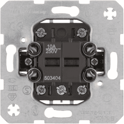 Gruppen-Wippentaster Modul-Einsätze 4 Schließer, gemeinsame Eingangsklemme – gemeinsame Eingangsklemme – mit 0-Stellung – auch als Jalousie-Taster 2fach geeignet – beleuchtbar mit Glimmaggregat – mit Schraubklemmen – 10 A – 250 V~ Hinweise der Motorenhersteller beachten!