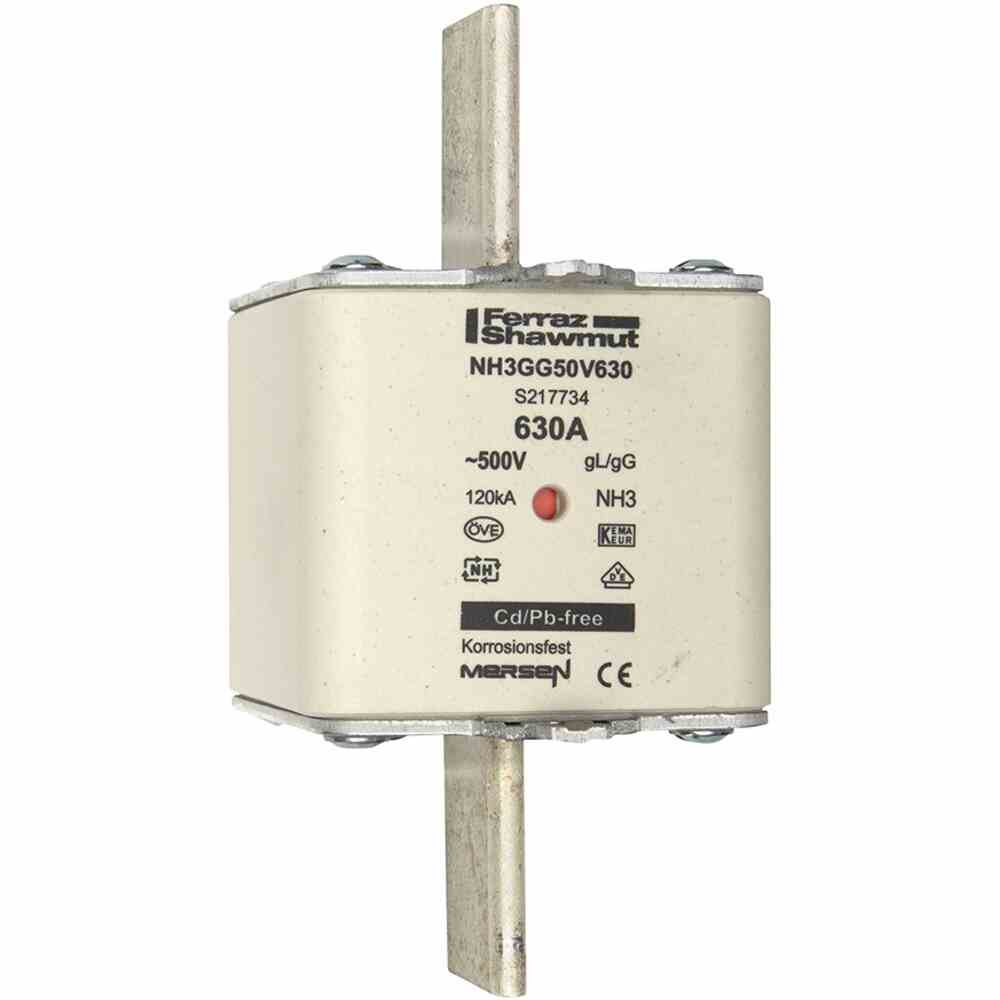 MERSEN S217734 NH-Sicherungseinsatz, 630A, NH3, 500V, gL/gG(Ganzbereichs-Leitungsschutz/Ganzbereichs-Gerätesch.), Kombikennmelder