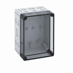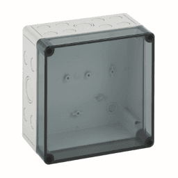 | Leergehäuse, mit Schutzart IP66, Polystyrol, Ui=690V AC, Ui=1000V DC, innenliegende Befestigungsstellen, für Standardinstallationen im Innenbereich, Kasten: Polystyrol, grau, Deckel: Polycarbonat, transparent, Ausschlagmembranen, M12/M16/M20/M25/M32, (23 seitlich) Abmessungen: 180 x 130 x 111 mm | |