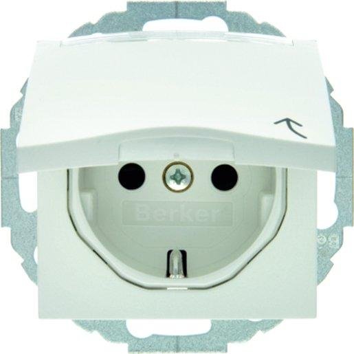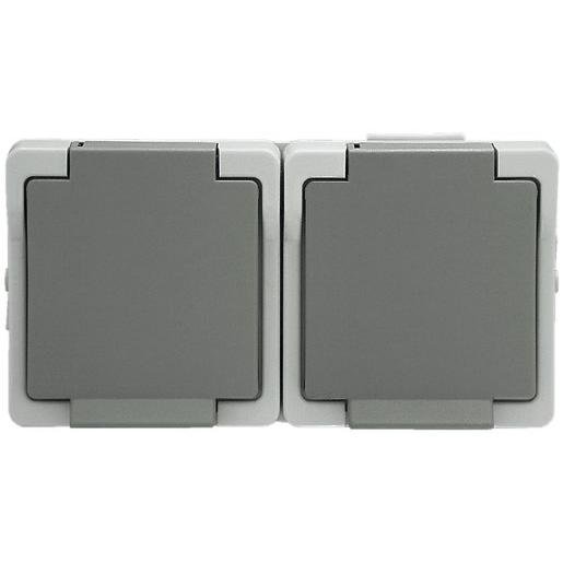 Einbaugehäuse bestehend aus Oberteil mit Klappdeckel aus Alu-Druckguss und Unterteil aus Thermoplast, mit zwei M20, Farbe: grau, Schutzart: tropfwassergeschützt IP41, bestückt mit einer SCHUKO-Steckdose, Farbe: weiß