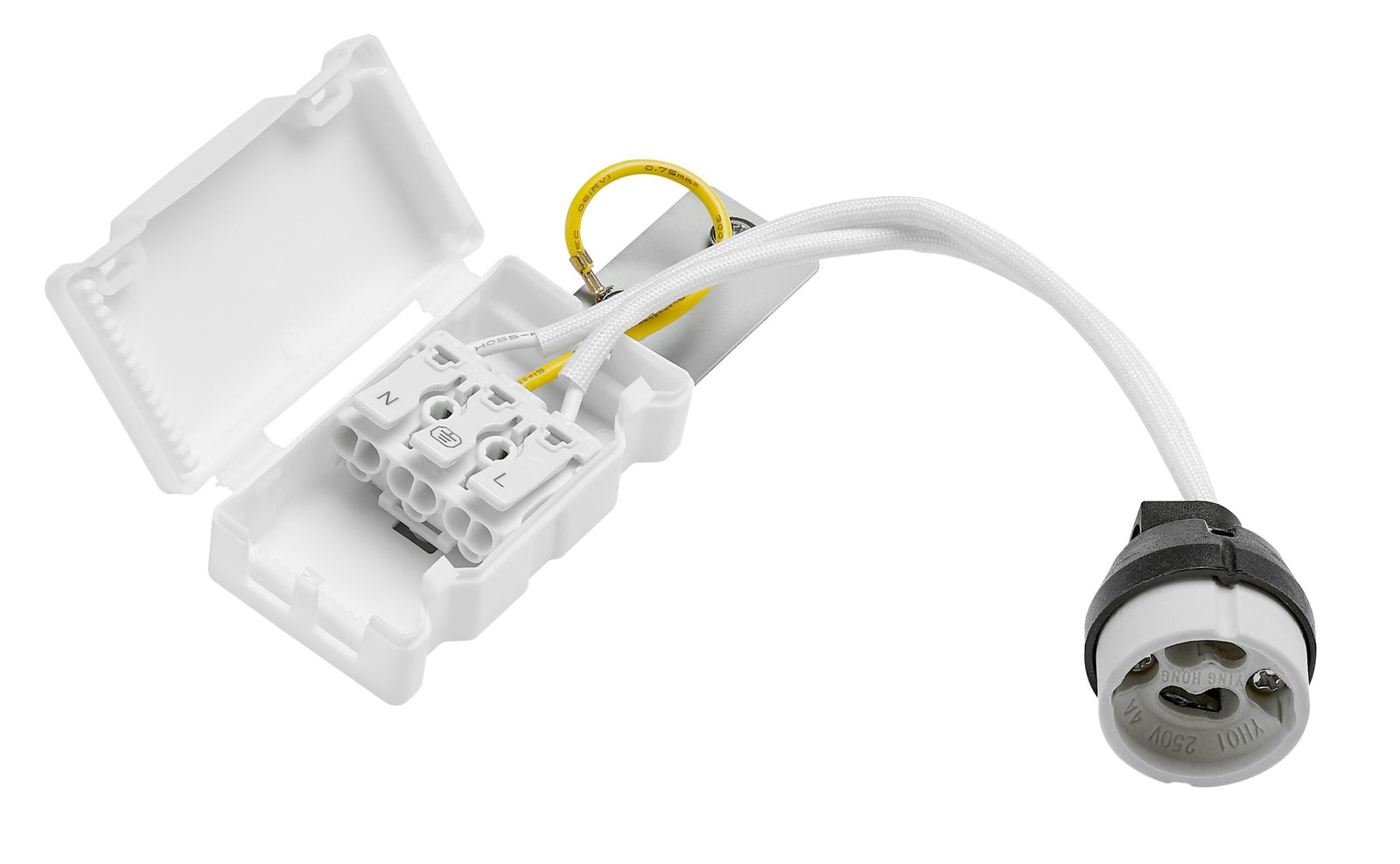 | Katalogseite: GU10 Sockel 230V mit Steckklemme und Schutzkappe |