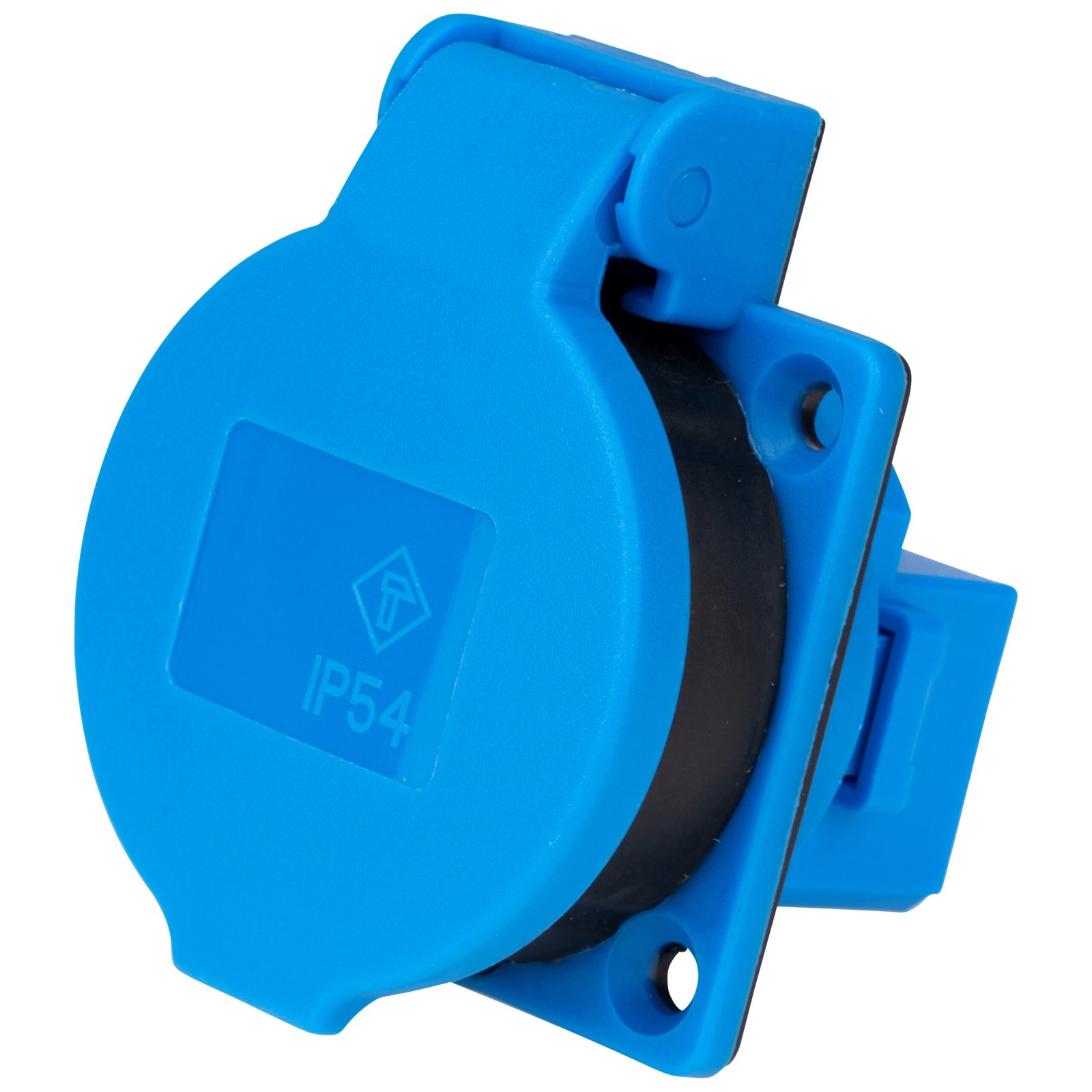 YY794316– Schukosteckdose mit Deckel, 16A, IP54, blau, Schraubklemmen