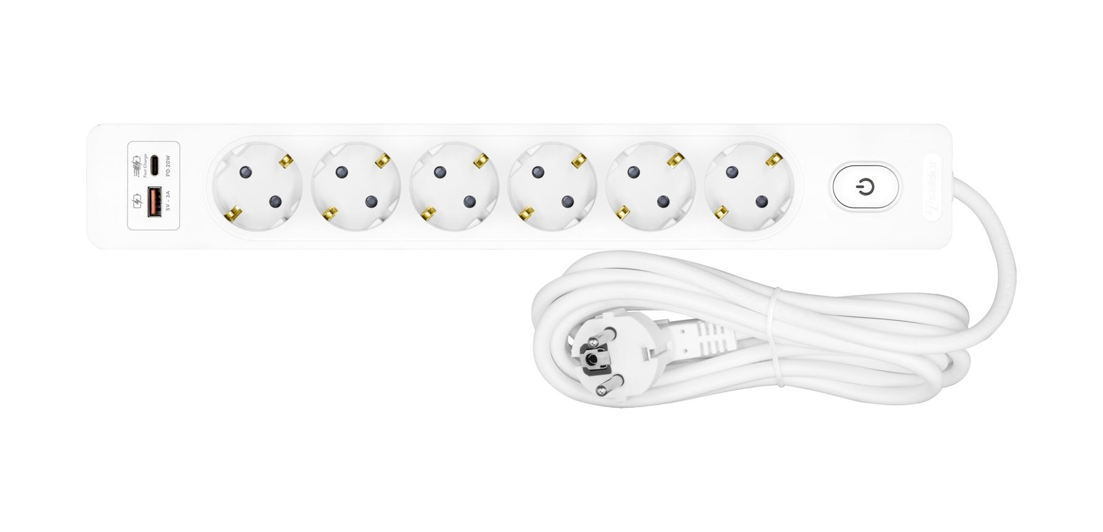 erhöhter Berührungsschutz, Ein-/Ausschalter, USB A + USB C Fast Charger (20W), weiß