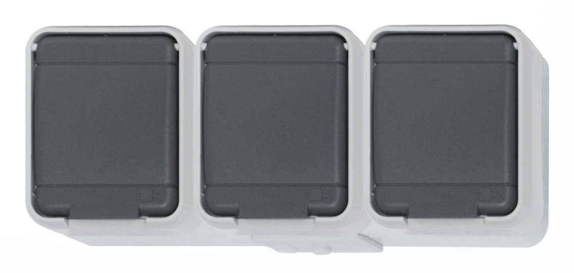 EL445809– AP IP44 3-fach Steckdose waagrecht, Steckklemme, basaltgrau