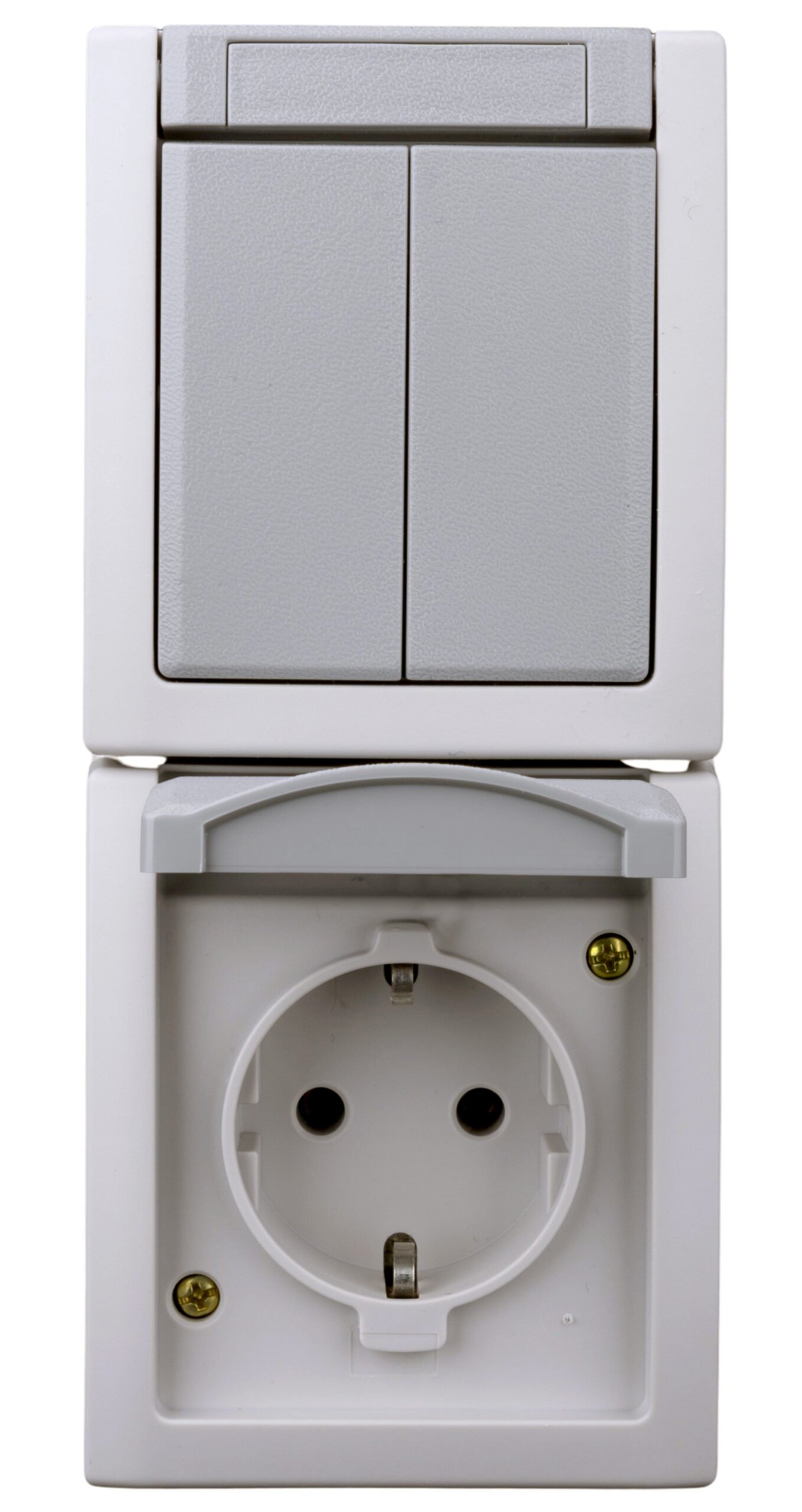 Foto: Kombination Serienschalter-Steckdose, Steckklemmen, IP54