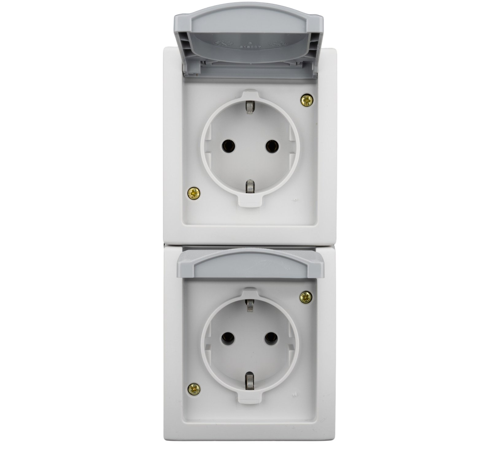 EV211013– Doppelsteckdose, Steckklemme, senkrecht, vorverdrahtet, IP54