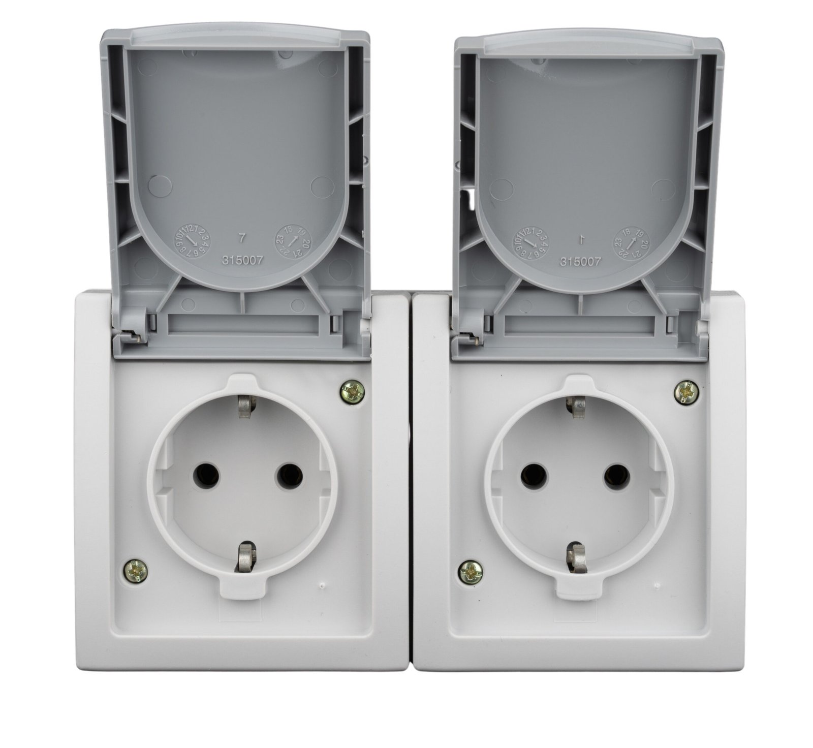 Aufputz, Anbau, Visio, Aufputzsteckdose, viso, AP, Feuchtraum, schuko, Außensteckdose, Lichtschalter, FR, AP, VISIO, IP54