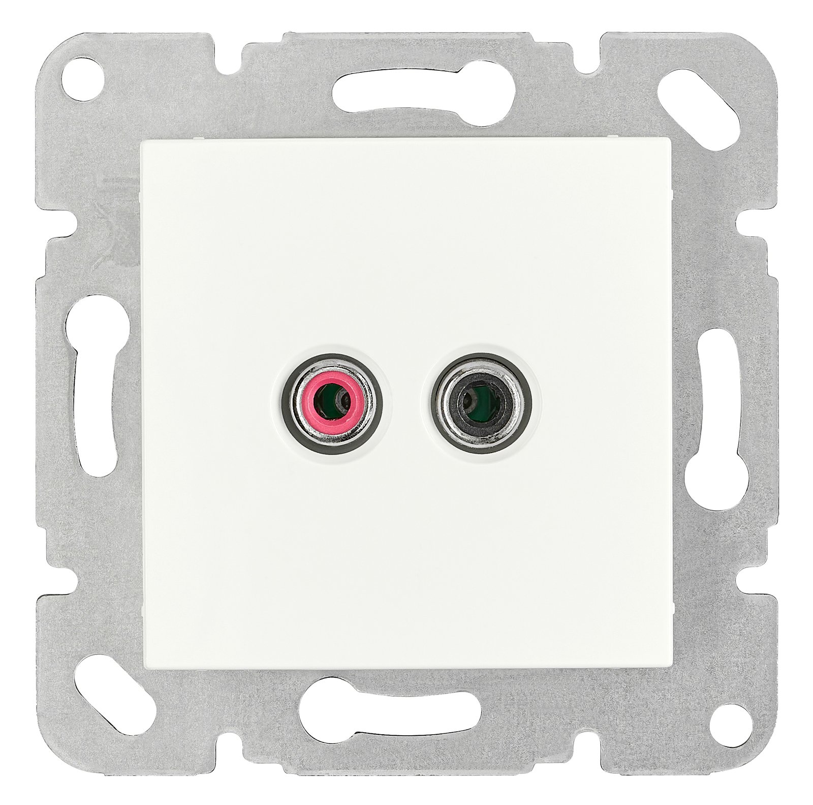 Cinch Audiosteckdose aus halogenfreiem Kunststoff mit rückwertigem Schraubanschluss. Zum Anschluss von diversen Audiogeräten mit einem Cinch-Anschluss wie Home-Entertainment Systeme oder dergleichen. Die Audiosteckdose wird sowohl mit Tragrahmen als auch Abdeckung in einem geliefert.