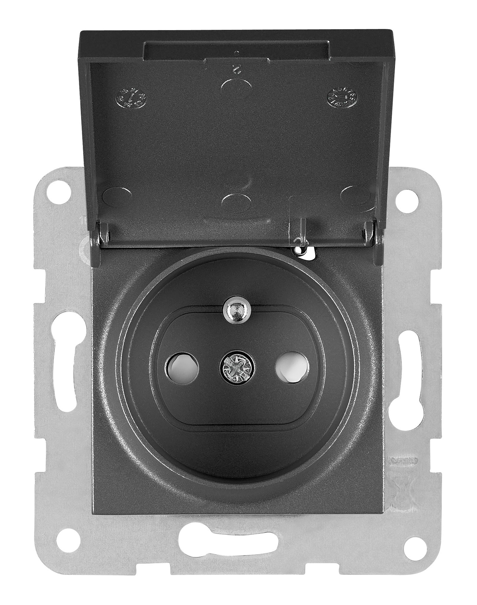 EV111253– Steckdose mit Erdungsstift, Klappdeckel, Steckklemmen, anth