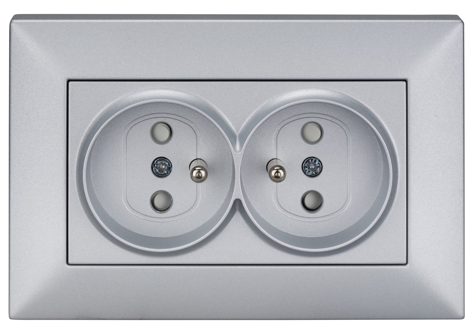 Foto: Doppelsteckdose mit Erdungsstift, Schraubklemmen, Silber