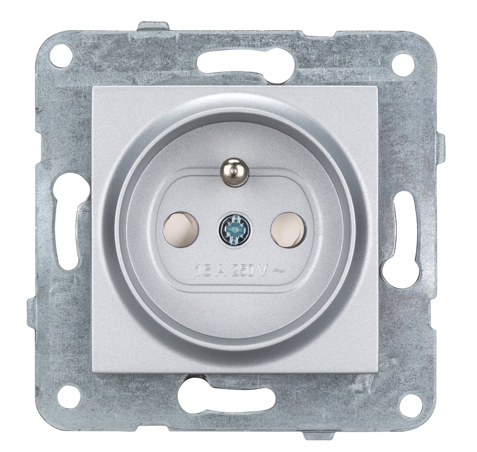 EV121252– Steckdose mit Erdungsstift u erhöhtem Berührungsschutz, Silb