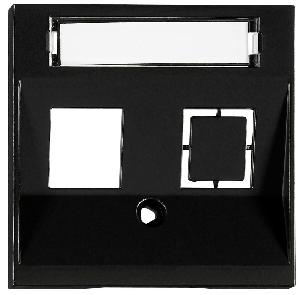 Einsatz zur Aufnahme von bis zu zwei RJ-45 Toolless Line Modulen, bestehend aus einem Metalltragrahmen und halogenfreiem Kunststoff. Die Toolless Line Module werden durch einfaches Einrasten auf dem Einsatz fixiert. Zur Komplettierung muss die Abdeckung EV1x4003– (1 RJ45 Modul) oder EV1x4004 (2 RJ45 Module) verwendet werden.