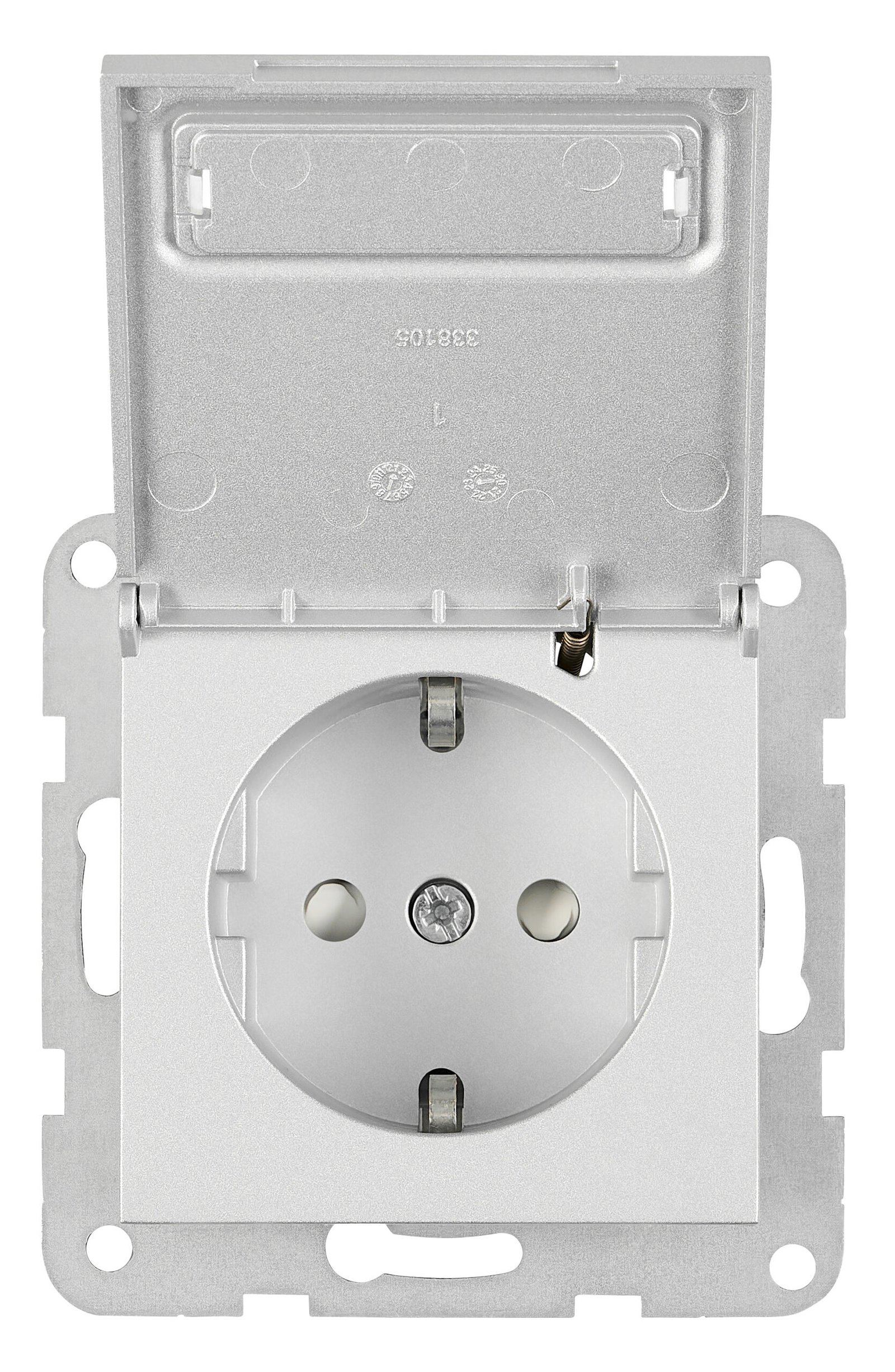 EV121320– Steckdose, Klappdeckel, Beschriftungsschild, Steckkl, Silber