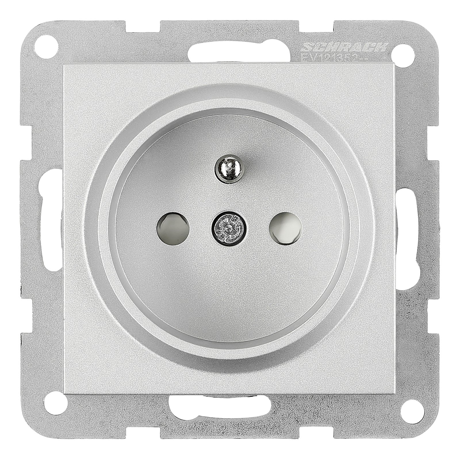 EV121352– Steckdose mit Erdungsstift u. erhöhtem Berührungsschutz,Silb