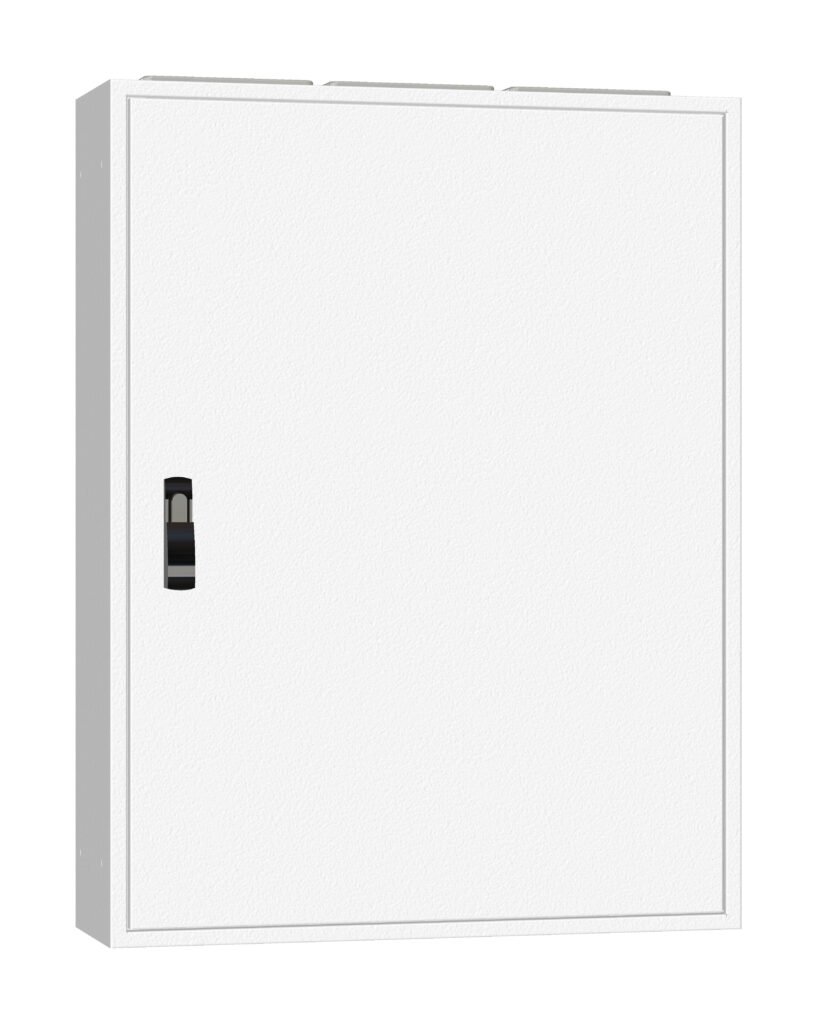 •Aufputz-Verteiler mit Rückwand, standardmäßig mit 3-Punkt-Stangenverschluss mit Schwenkhebel (für Halbzylinder-Einsatz vorbereitet)