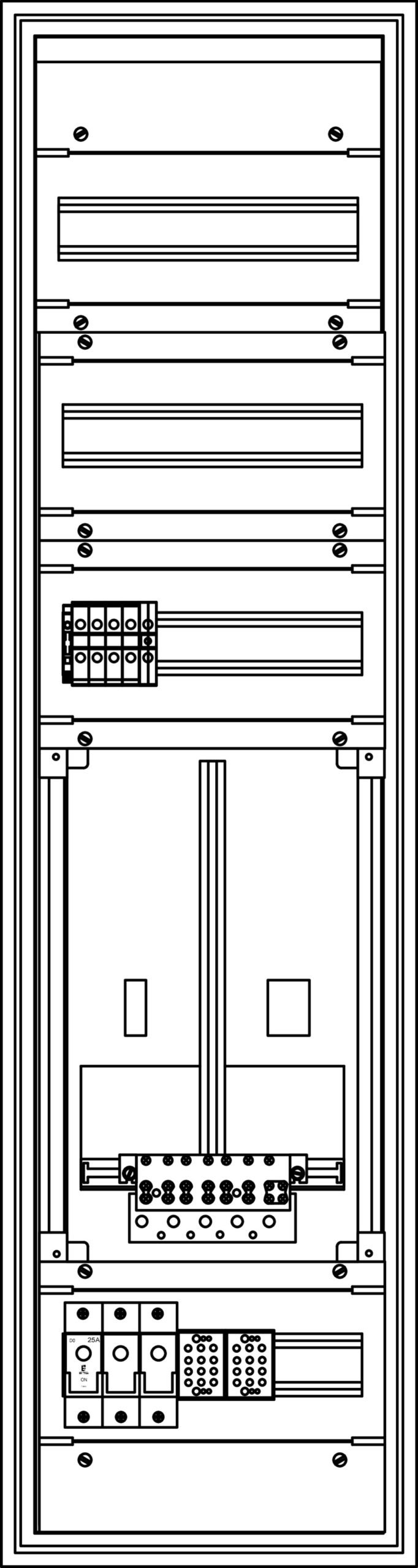 61005 Sperre, 1 Zählerplatz, Putzrahmen, 3 Gerätefelder 12TE oben + 1 Gerätefeld 12TE unten