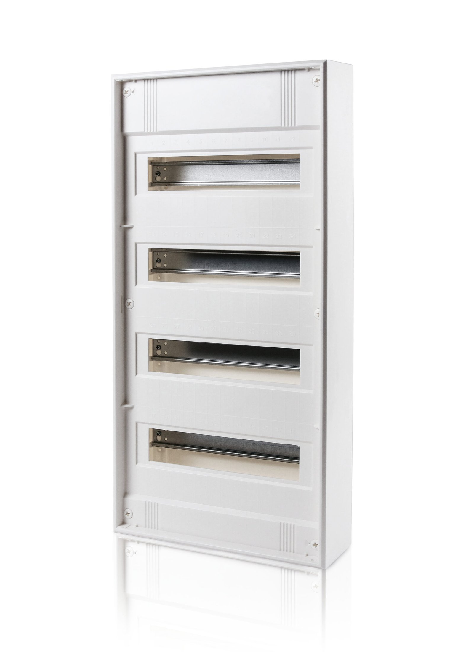 BK003124– Aufputz Verteiler 4-reihig, 48TE, reinweiß, ohne Türe