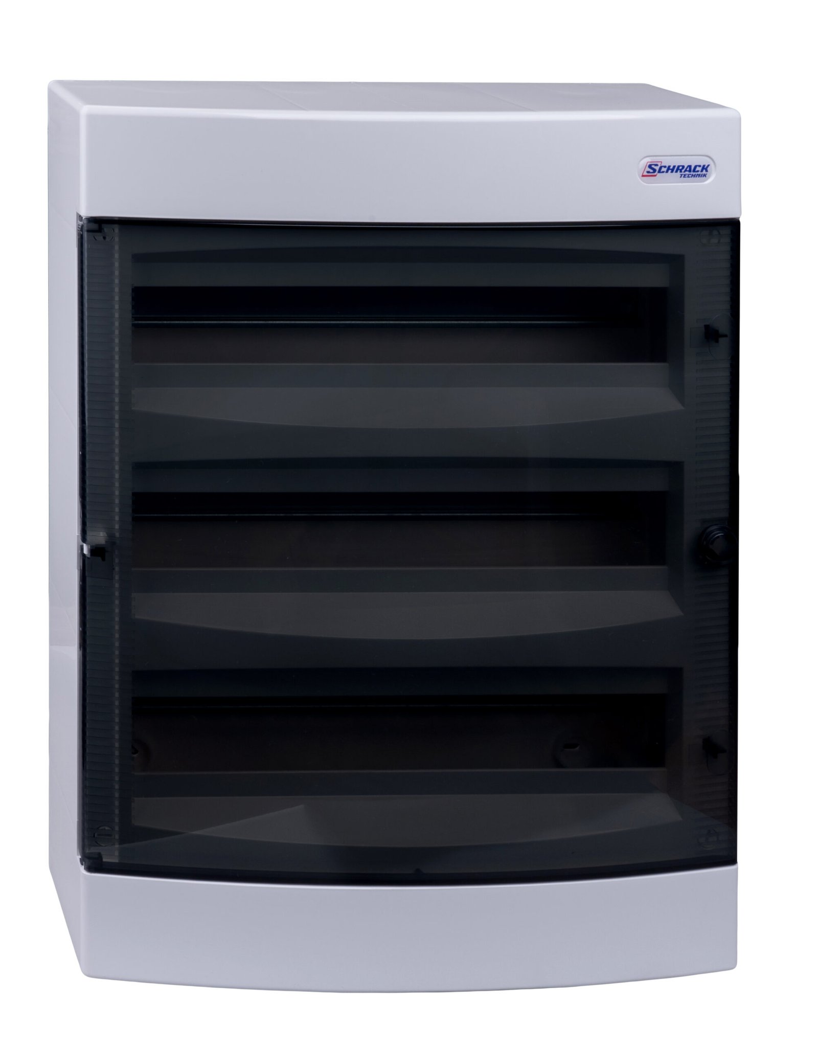 BK080107– AP-Wohnungsverteiler 3-reihig, 54TE, IP40, transparente Tür