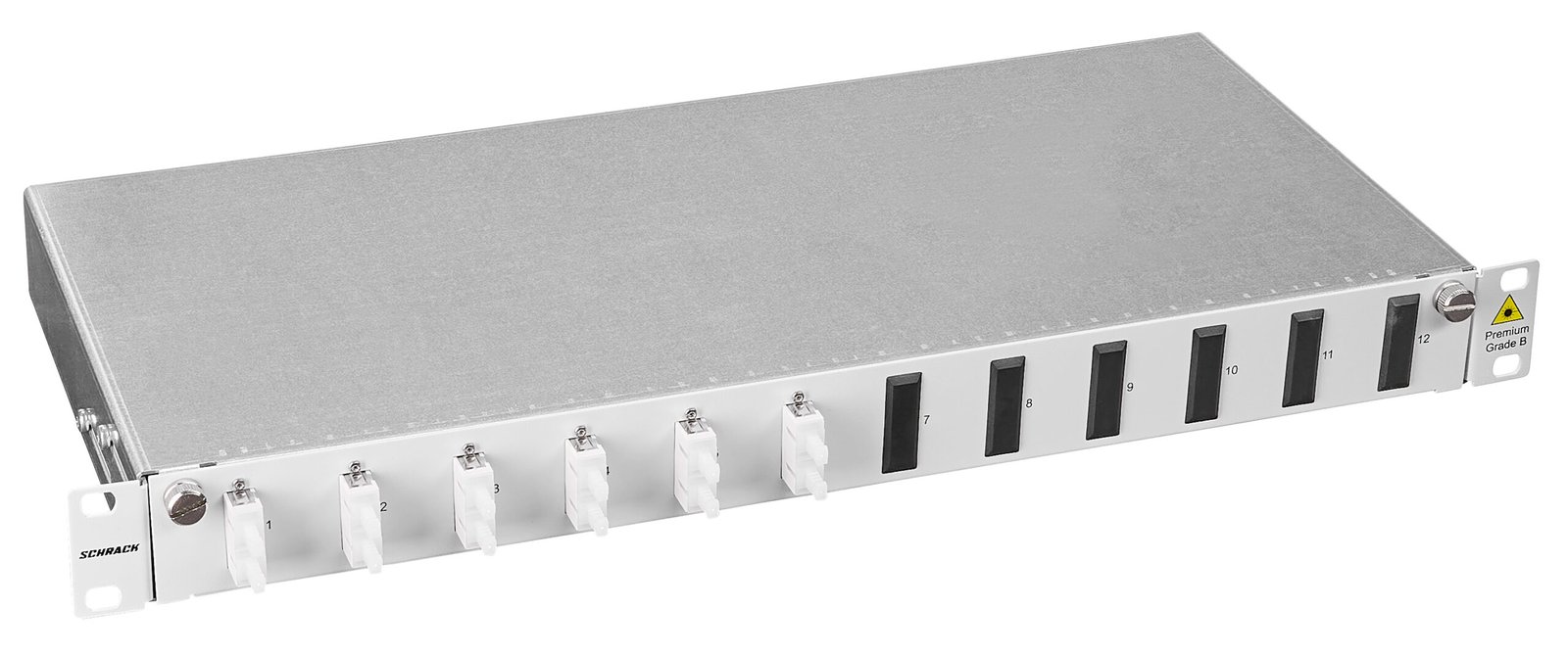 Foto: LWL Patchpanel 19″, 1 HE, ausziehbar, für 8 Fasern, SC, MM