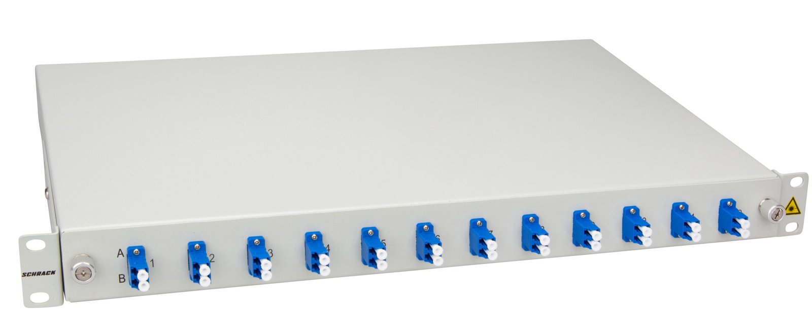 mit 12 LC Duplex Ausnehmungen - Nicht verwendete Ausnehmungen sind mittels Blindstoppeln geschlossen