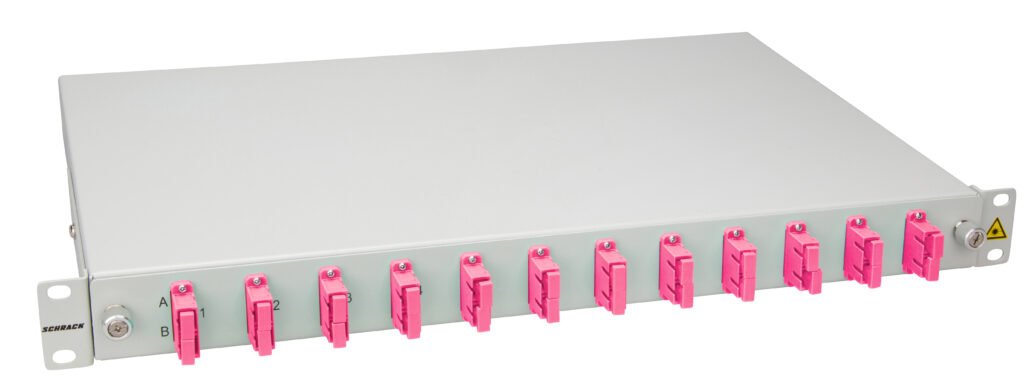 mit 12 LC Duplex Ausnehmungen - Nicht verwendete Ausnehmungen sind mittels Blindstoppeln geschlossen