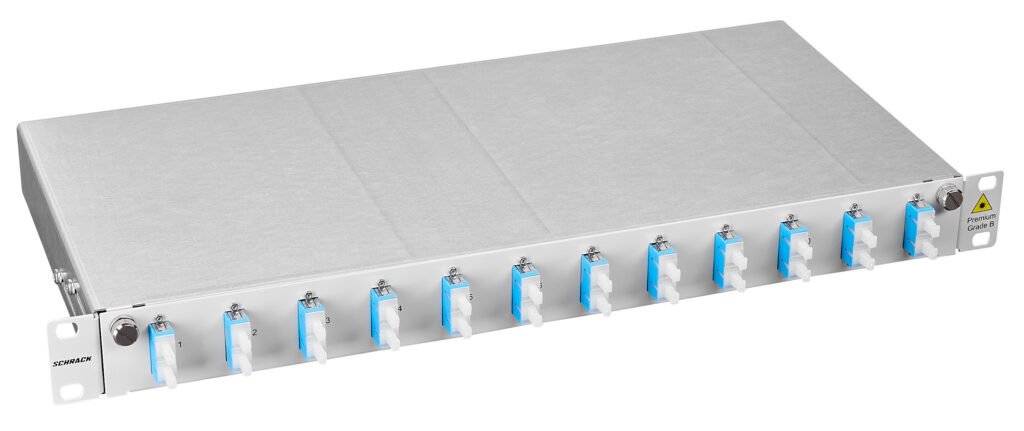 HSELS244LG LWL Spleißbox, 24Fasern, LC,50/125µm OM4, 19″, 1HE, Klasse B