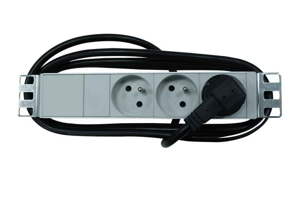 IU070110– 19″ Netzleiste 9xUTE, Profil ALU 1HE, 2m-Kabel, RAL7035