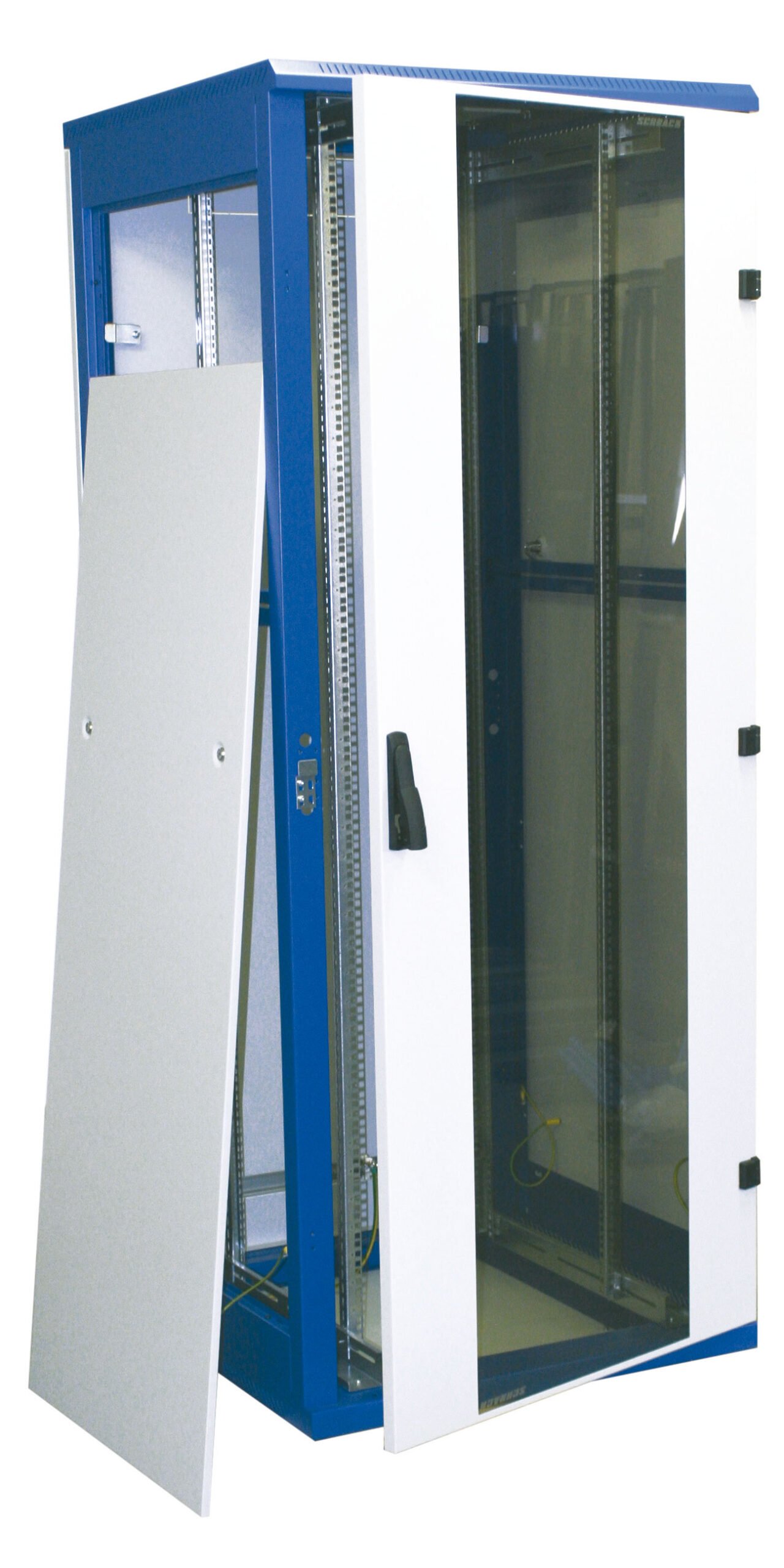 - Zahlreiches Zubehör (Sockel, Lüfter, Kabeleinführungen, Fachböden, Patchpanele, Kabelführungen, Netzleisten, Türen, etc.) verfügbar.