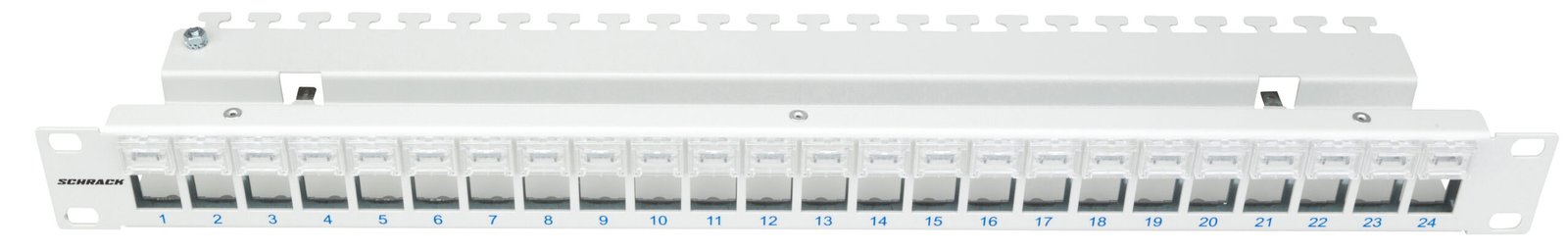1HE, RAL7035 Lichtgrau, einteilig, Patchkabelverriegelung oben