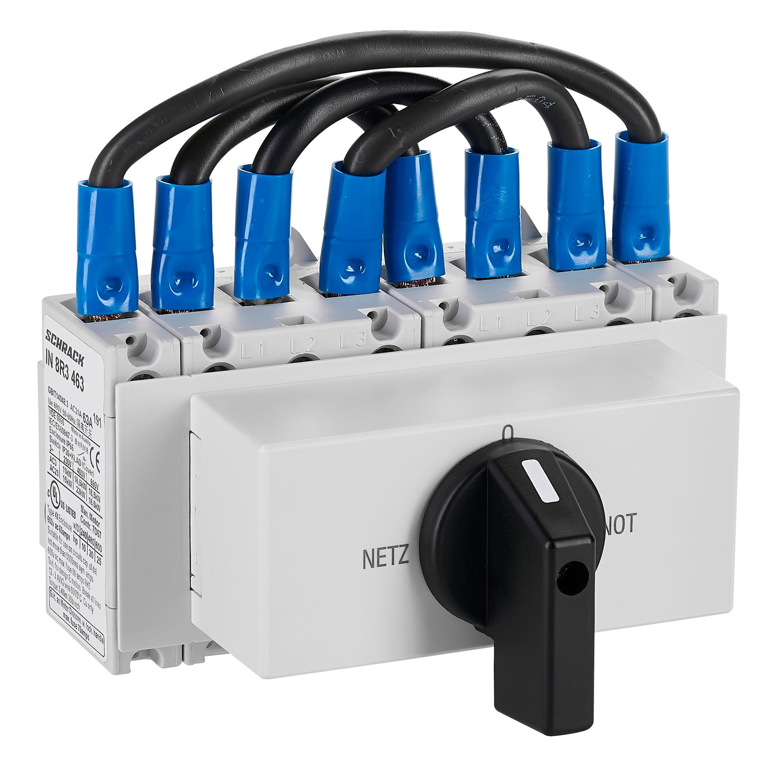 Umschalter Netz-0-Notstrom, Reiheneinbau, 4-polig, 63A, 22kW