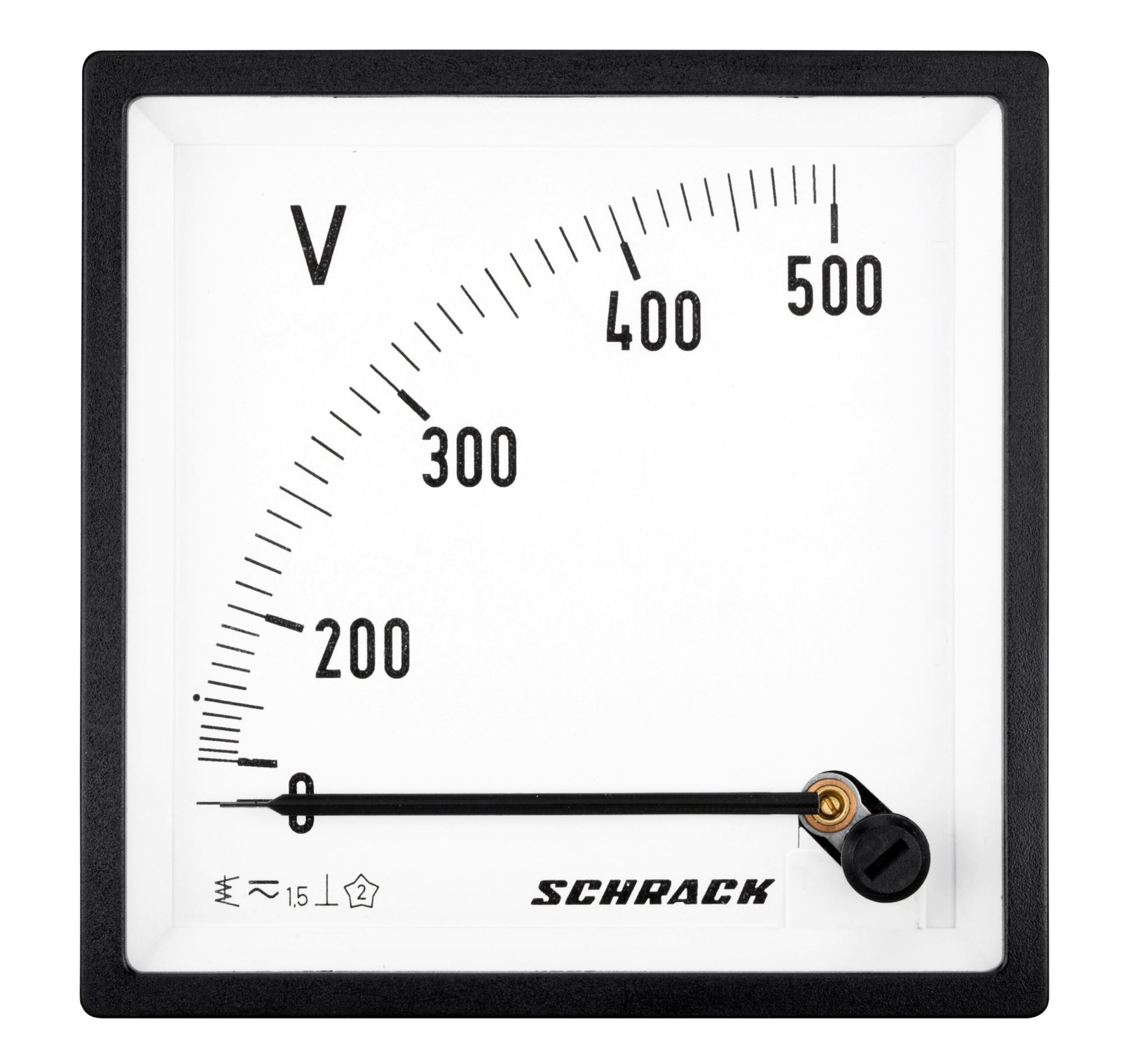 Bauart Fronteinbau, Funktion Voltmeter AC, Größe 96x96mm, Messbereich 500V, Schutzart IP52 (Front), IP00 (Anschlüsse)