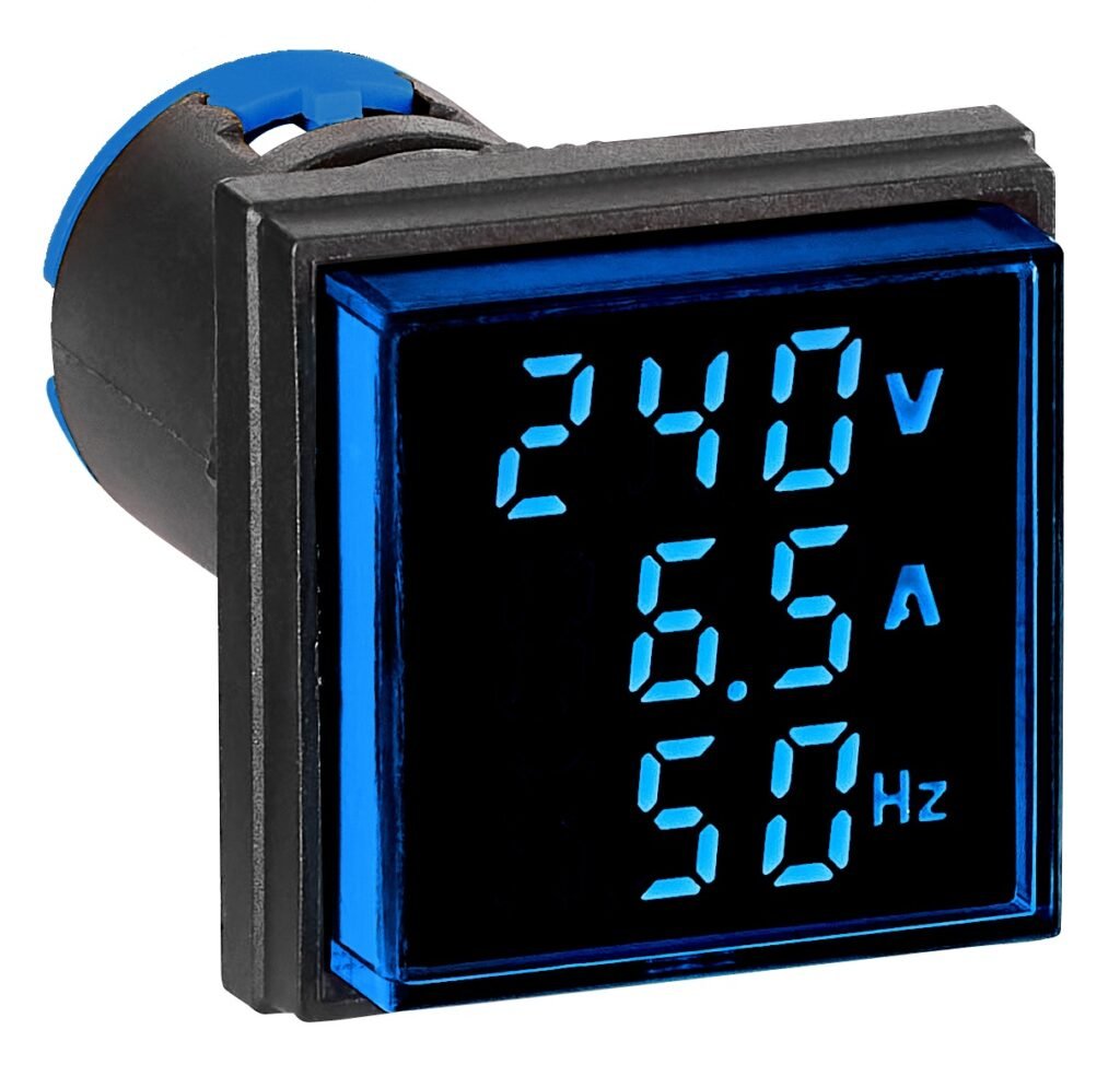 Messgerät, Strommessgerät, Spannunsanzeiger, Messgerät, Amperemeter, Amperemeter, AC, Voltmeter, Voltmeter, AC, Frequenzmesser, LED, gelb, viereckig