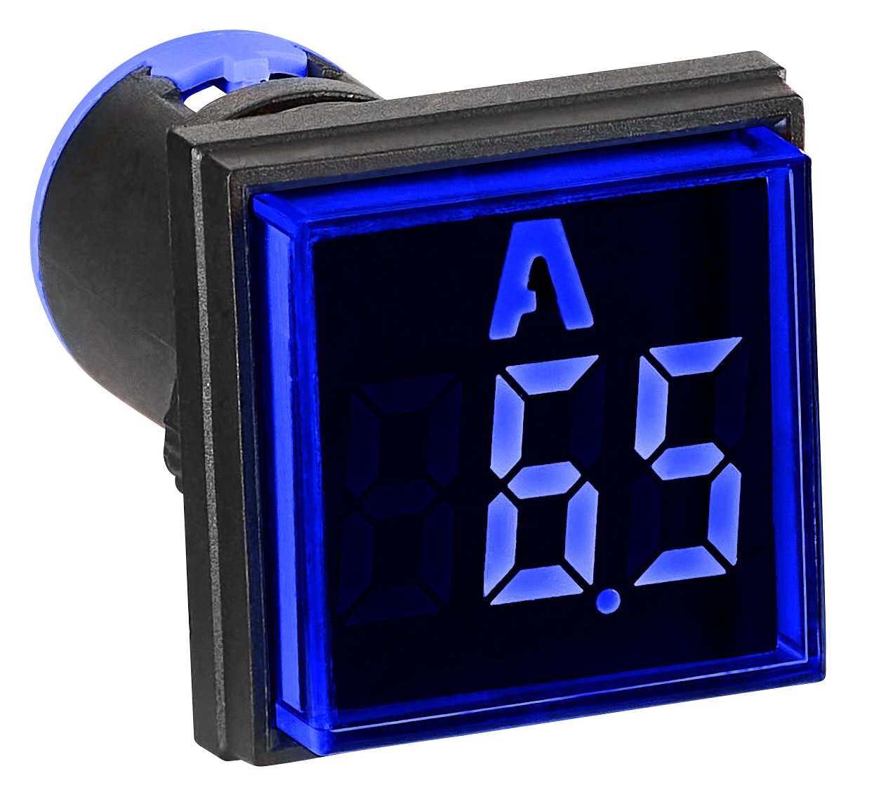 Messgerät, Strommessgerät, Spannunsanzeiger, Messgerät, Amperemeter, Amperemeter, AC, LED, blau, viereckig