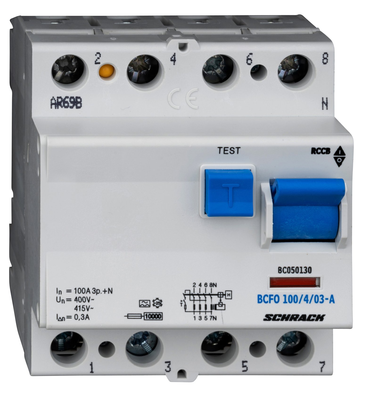 Fehlerstromschutz, Fehlerschutzschalter, FI-Schutzschalter, BCF0, 2-pol, 4-pol, FI, bcfo, BCF0, 100/4/03-A, BD050130, RCD, RCCB, 4/100/0, 3