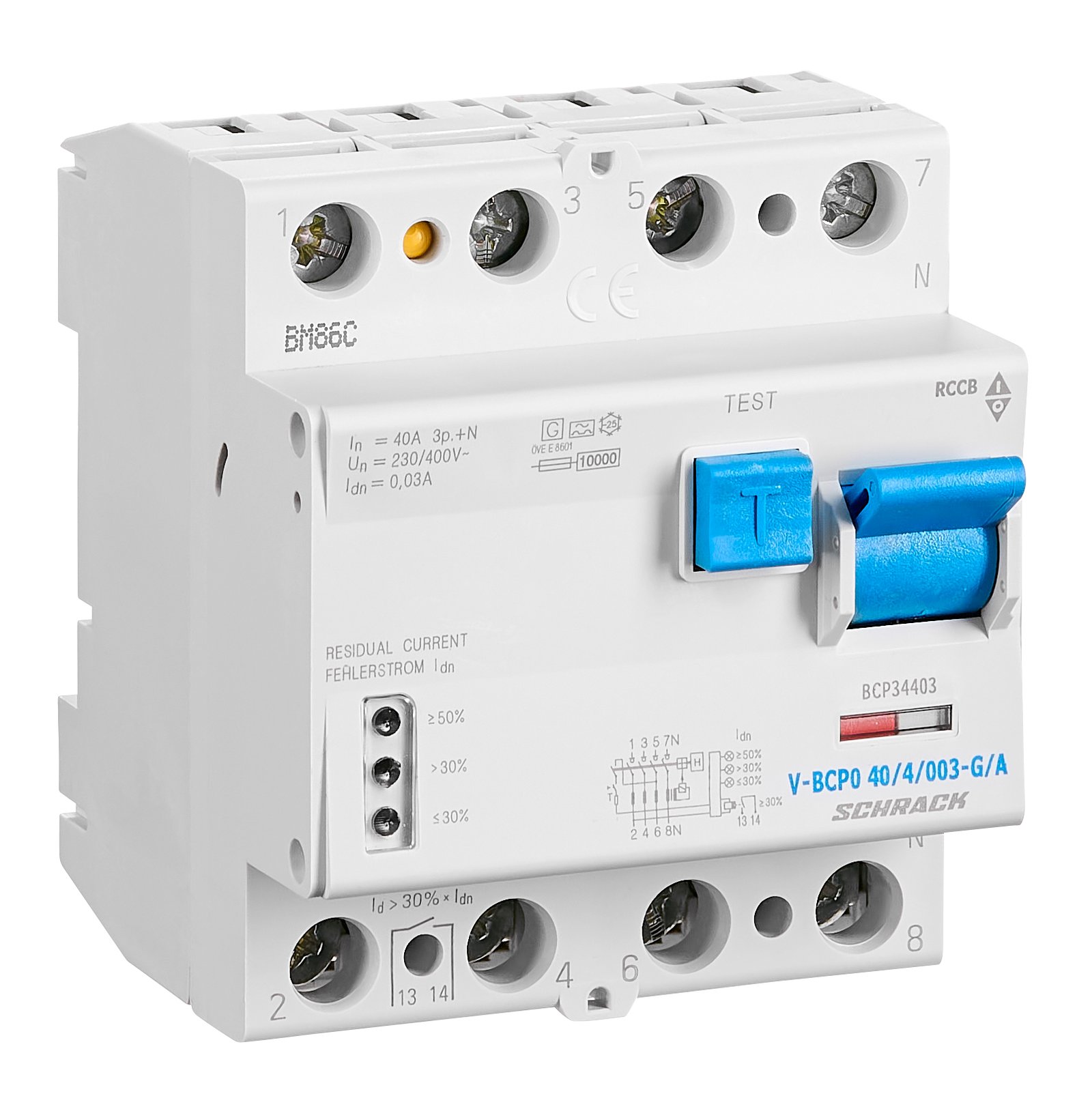 Fehlerstromschutz, Fehlerschutzschalter, FI-Schutzschalter, BCF0, 2-pol, 4-pol, FI, bcfo, V-BCP0, 40/4/003-G/A, RCD, RCCB, 4/40/0, 03