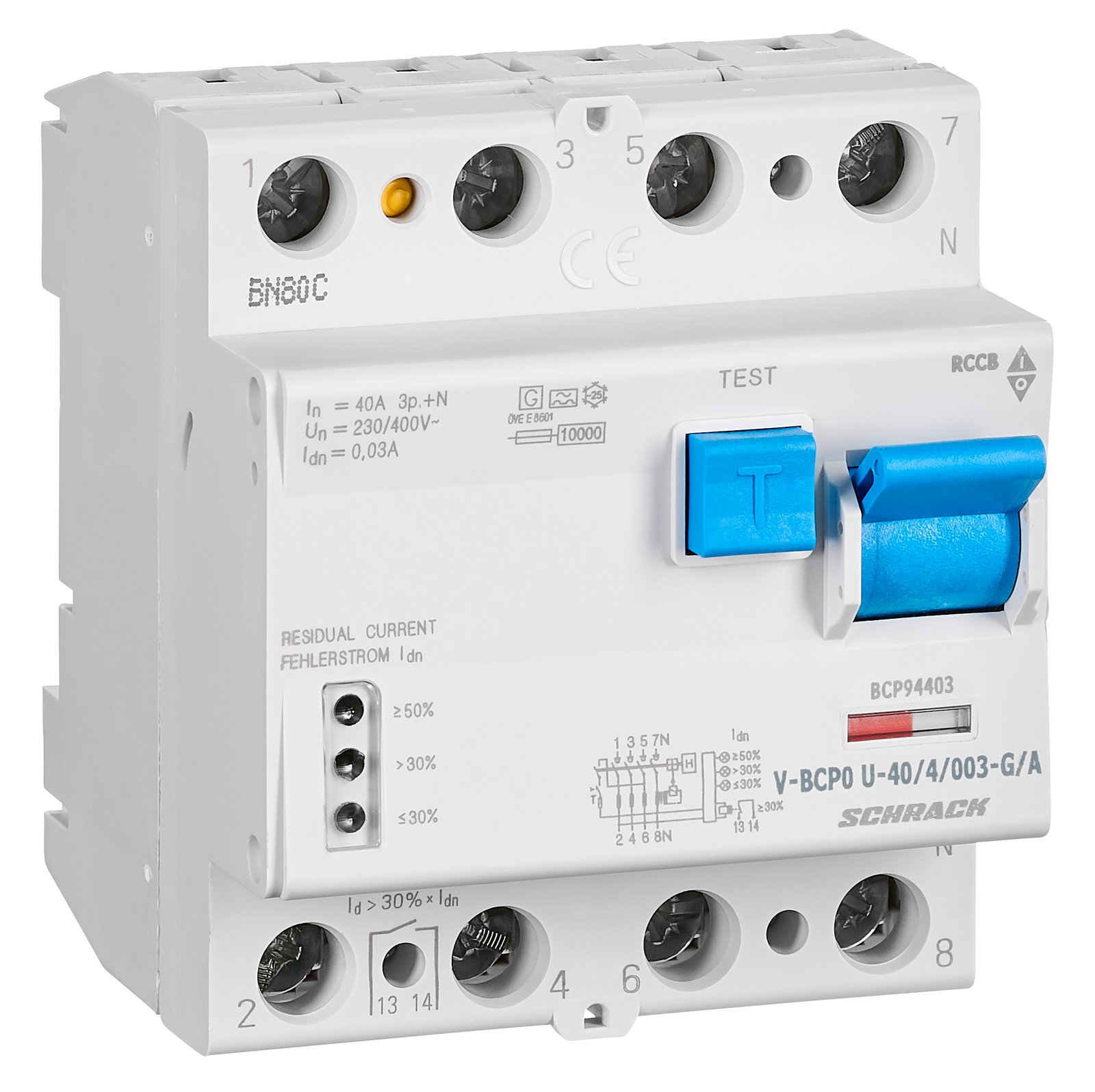 Fehlerstromschutz, Fehlerschutzschalter, FI-Schutzschalter, BCF0, 2-pol, 4-pol, FI, bcfo, V-BCP0, 40/4/003-G/A, RCD, RCCB, umrichterfest, 4/40/0, 03