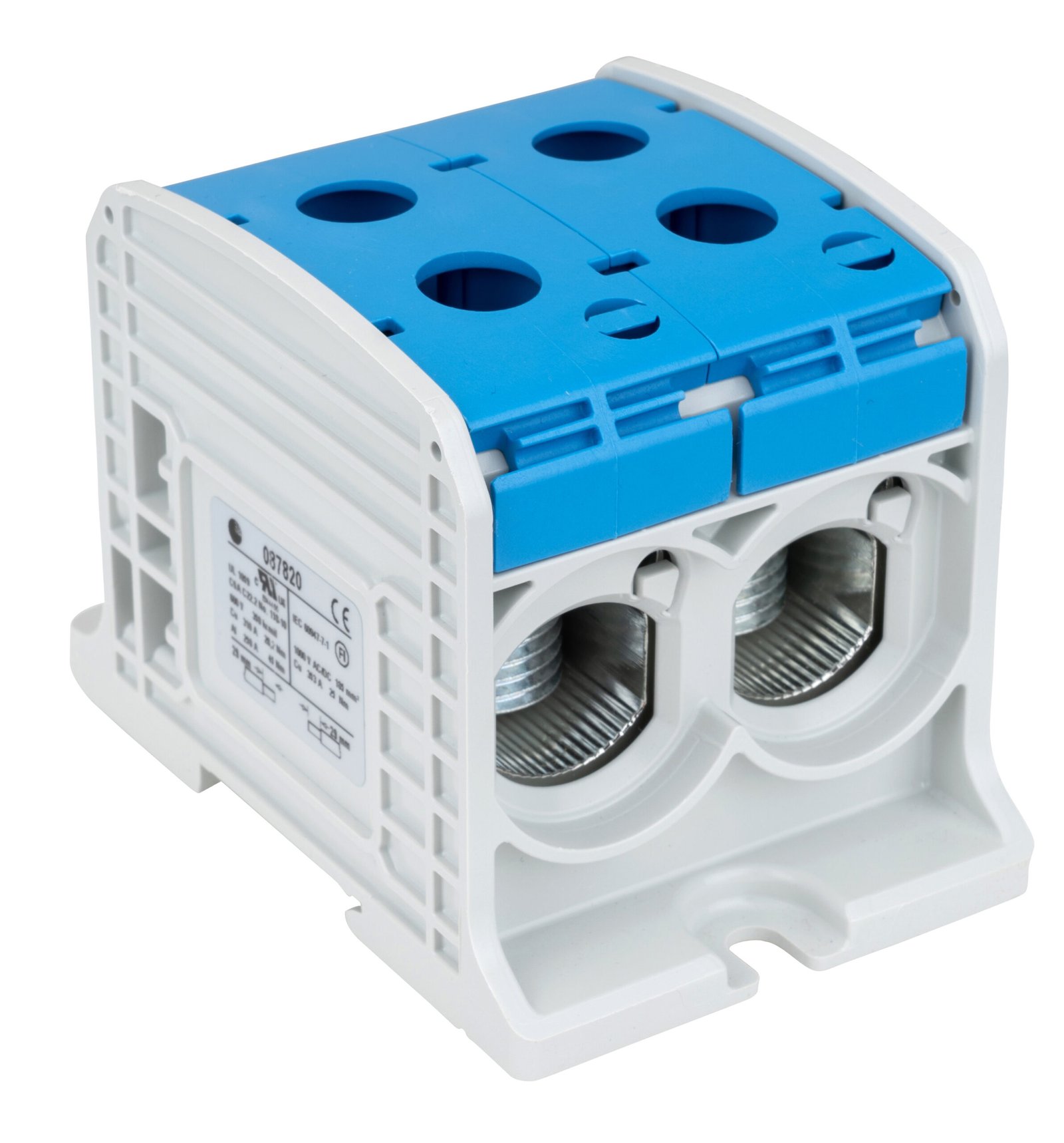 Foto: Aluminium / Kupfer Klemme, 1-polig, Doppel 185mm² blau